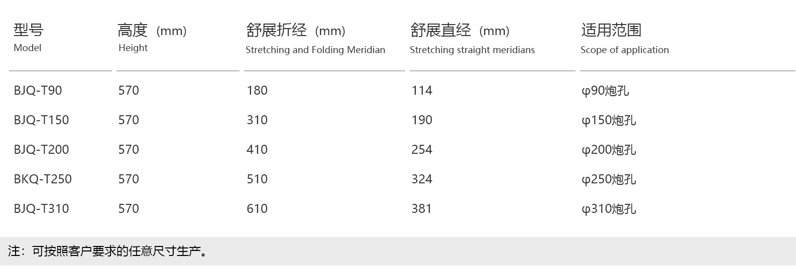 5、与孔径相适应的产品型号